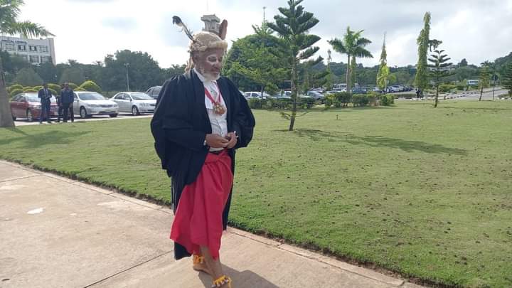 The lawyer, who arrived at the court at about 9:05 am, created a scene in the courtroom when other lawyers who had been seated were taken by surprise to see him robed in traditional attire to look like an herbalist.