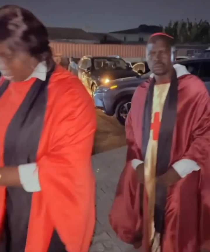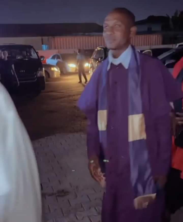 PrettyMike who has developed a niche with his strange entourage for every wedding/event he attends, took it up a notch this time around when he arrived at the venue accompanied by some men and a woman dressed as clerics.
