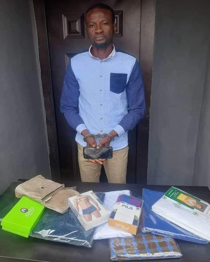 His cup of criminal acts got filled to the brim recently after dispossessing his victim of her personal Infinix Hot 9 mobile phone, assorted fabrics, underpants and singlets she went to deliver to him.