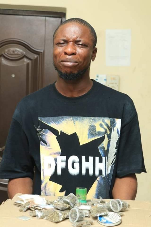 Momoh, 26, an indigene of Lokoja Local Government of Kogi State was apprehended at 11:40am of Tuesday 6th of September, 2022 with 66 wraps of weed suspected to be Indian Hemp, 4 containers of weed, assorted charm, scissors, 52,000 cash and other hard drugs called ‘ICE’.