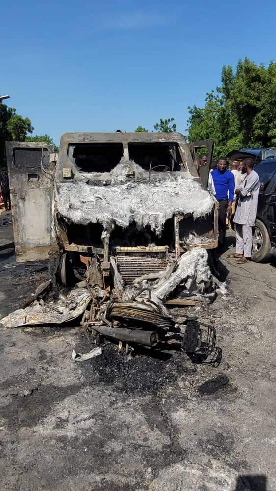 “On getting to Jeda village, the Carina E car had a head-on collision with the Bullion van, as a result, bursting into flames and consumed three other cars. Consequently, a total of five vehicles and one motorcycle were burnt to ashes,”