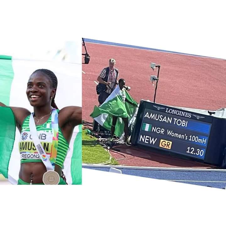 Amusan becomes the first World Champion to win a Gold medal in the event and the first Nigerian athlete ever to be crowned champion at all levels of athletics in the same year, after successfully defending the Commonwealth Games title she won four years ago in Gold Coast Australia.